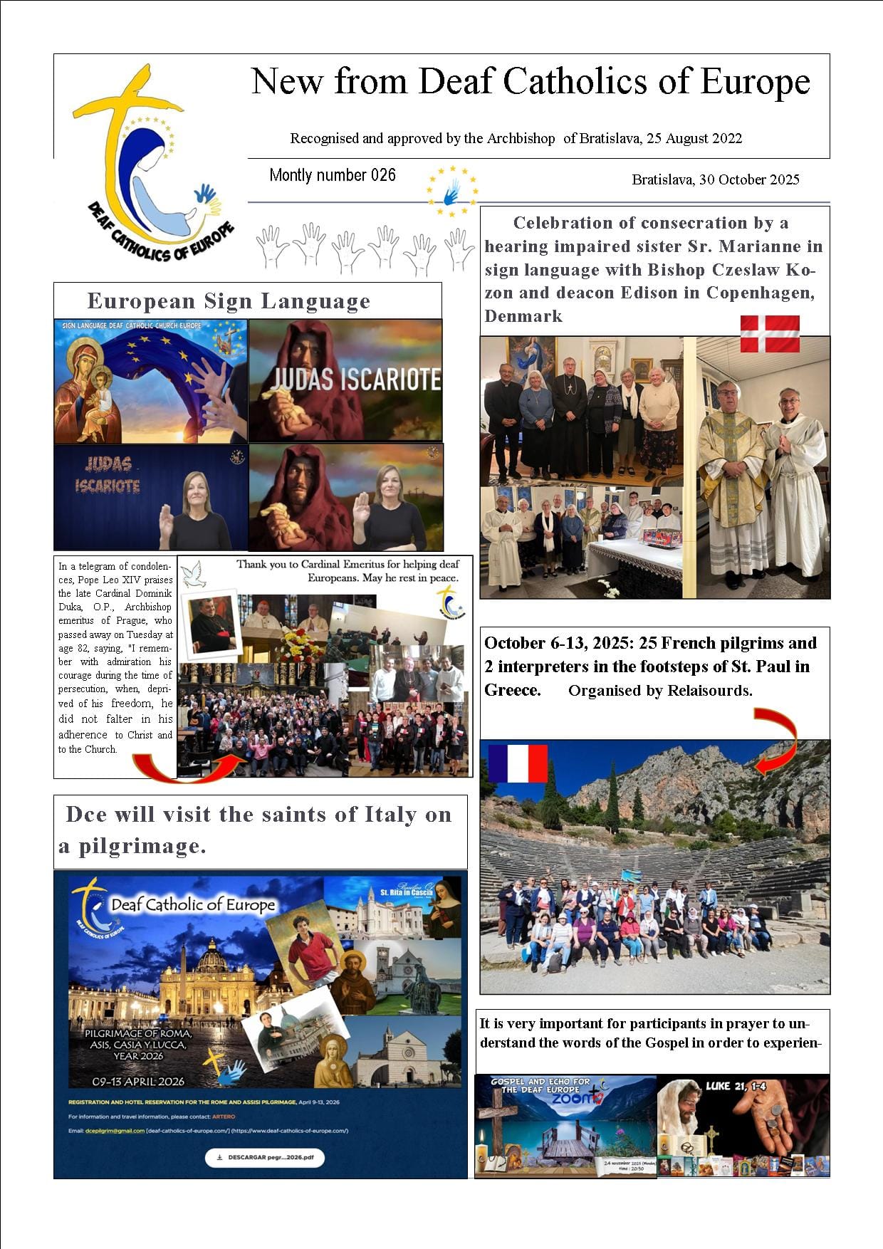 -Next year, 2026, I will be traveling on a pilgrimage with Deaf Catholics of Europe to Assisi, Cascia, Lucca, and Rome (Italy) from April 9th to 13th, 2026.