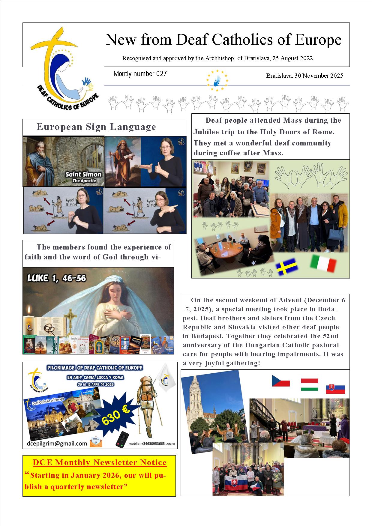 Next year, 2026, I will be traveling on a pilgrimage with Deaf Catholics of Europe to Assisi, Cascia, Lucca, and Rome (Italy) from April 9th to 13th, 2026.